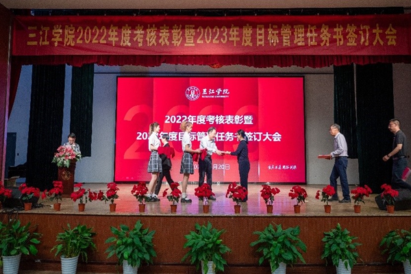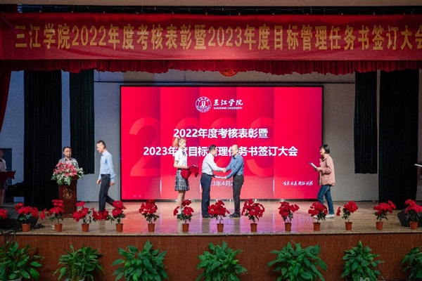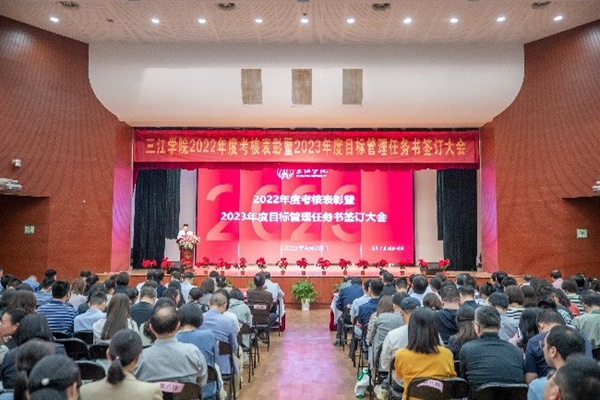 4月20日,best365官网在三江会堂召开2022年度考核表彰暨2023年度目标管理任务书签订大会,校领导及全体教职工出席大会。校党委常务副书记、副校长周更生主持会议。