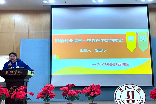 胡远巧校友以题为《我的创业探索——在迷茫中走向坚定》分享了自己的创业理念和历程。她认为,首先做自己喜欢的事;其次要能游刃有余地处理自己的事;第三,多跟他人交流;第四,做事脚踏实地。此外,她叮嘱学弟学妹在就业时要提高安全防范的意识。