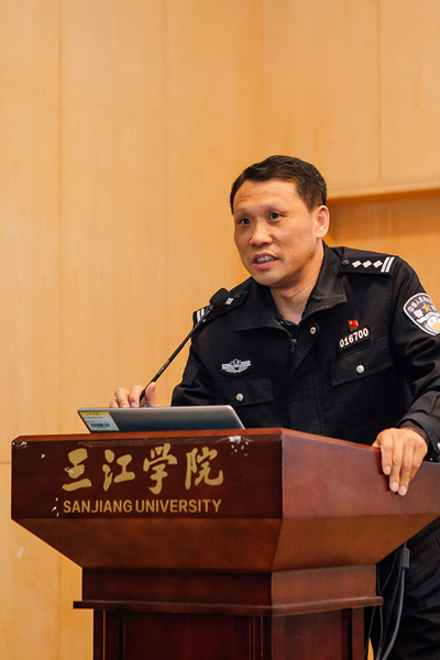 培训会上,姜斌警官从电信网络诈骗概念、防范电信网络诈骗重要性、电信网络诈骗高发类型、防范补救措施等几个方面的内容进行了详细的讲解。他要求大家充分认清防范电信网络诈骗严峻形势、高度重视反诈宣传、切实扛起责任担当、推动宣讲落地见效、形成内部整体合力、加强外部沟通协作。他希望警校共同努力,携手攻坚,筑起高校防范电信网络诈骗的高墙。