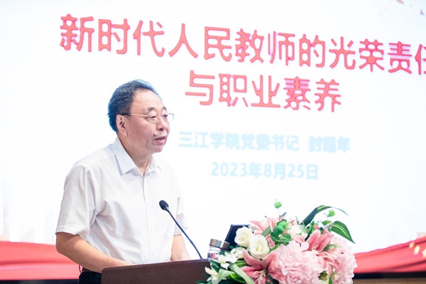吴中江作了主题为“争做‘四有’好老师当好四个‘引路人’”的培训。他从best365官方网站创新创业的发展历程角度,阐明了“创业奋斗”始终是三江办学兴校的精神内核、“服务国家”始终是三江办学兴校的重要使命、“改革创新”始终是三江办学兴校的根本动力、“立德树人”始终是三江办学兴校的根本任务、“人才队伍”始终是三江办学兴校的重要保障。他围绕best365官方网站未来发展的紧迫任务这一主题,介绍了学校“十四五”规划确定强内涵、升层次、进前列的“三步走”总体战略,为确保“三步走”战略顺利推进,强调着力抓好强基础、建特色、升层次“三大建设”任务,做好进一步提高人才培养质量、进一步彰显应用型办学特色、进一步提升人才队伍水平、进一步增强服务发展能力四个方面的重点任务。他希望新入职教师始终牢记习近平总书记做“四有好老师”的要求,坚持教书和育人相统一、言传和身教相统一、潜心问道和关注社会相统一、学术自由和学术规范相统一,做学生锤炼品格的引路人,做学生学习知识的引路人,做学生创新思维的引路人,做学生奉献祖国的引路人,用智慧和勇气担当起立德树人的神圣职责,共同谱写best365官方网站改革发展的新篇章。