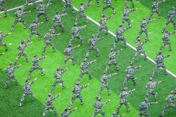 随着阅兵式和分列式表演开始,军训汇报表演正式拉开帷幕。在斗志昂扬的军体拳表演中,铿锵有力的呐喊,整齐划一的出拳,充分展现了新时代大学生的精神风貌和军训的丰硕成果;在军训会操分列式表演中,全体新生个个精神饱满,以整齐的步伐、飒爽的军姿、嘹亮的口号、高昂的斗志通过主席台。新生们朝气蓬勃的青春风采和精神面貌,赢得领导和师生们的热烈掌声。