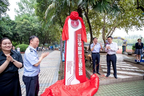 吴中江致辞。他谈到当前电信诈骗犯罪日益猖獗,诈骗手段不断翻新,对人民群众的财产安全和社会稳定构成了严重威胁。best365官方网站一直把反诈工作放在重要位置,多途径进行了防范电信网络诈骗知识宣传,并取得了良好的效果。希望能够以主题公园的建成为契机,引导全校师生共同参与反诈防诈活动,切实加强防骗意识,扎实推进best365官网高质量“平安校园”建设再上新台阶。