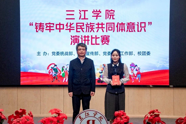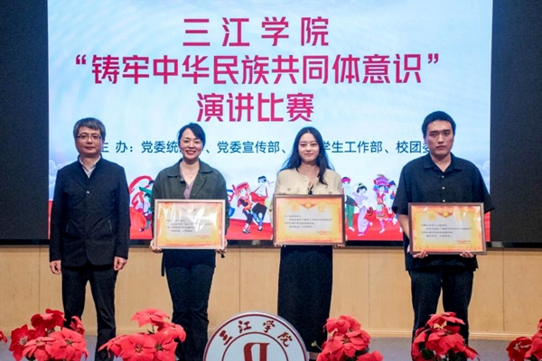 在比赛中,选手们围绕本次演讲主题,以饱满的热情和生动的语言,为现场观众们讲述了对中华民族共同体的感悟,分享自己和身边生动鲜活、感人至深的民族团结故事,用“小故事”阐发团结真理和奋斗精神。选手们在演讲中情感真挚、激情洋溢、感染力强,既赛出了风格,又展示了青年大学生的风采。经过激烈角逐,产生一等奖1名,二等奖2名,三等奖3名,优秀奖6名,东山校区管委会、计算机科学与工程学院、高等职业技术学院荣获优秀组织奖。评委们为获奖选手和单位颁奖并合影留念。