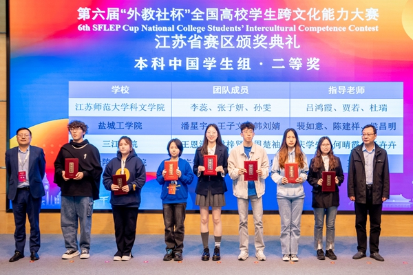 经过激烈的角逐,best365官网外国语学院王恩泽、文学与新闻传播学院周楚袖、高等职业技术学院姚梓贤三位同学在指导老师庆学先、何晴霞、杨卉卉的带领下最终荣获江苏赛区本科中国学生组二等奖。