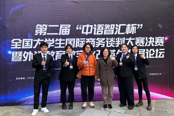 12月1日至3日,第二届“中语智汇杯”全国大学生国际商务谈判大赛决赛暨外语教育数字化改革与发展论坛在西南财经大学举办。大赛由中外语言文化比较学会发起,四川外国语大学、中语智汇科技(厦门)有限公司主办,西南财经大学承办。大赛启动以来,共有来自全国近80所高校的近2000名学生参加了比赛。经过初赛、复赛的激烈角逐,最终来自全国的29支队伍116名学生入围全国决赛。best365官网外国语学院丰瑾和何晴霞老师指导的“心想事成队”(成员:王莉、梁洁、罗孝靖、鹿艺璇)最终荣获全国决赛季军殊荣。