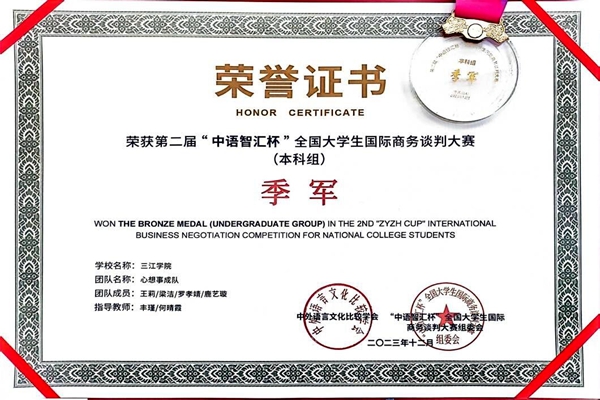 本次大赛初赛为理论测试,内容为根据商务谈判典型工作任务设置的问答题,省赛复赛为根据要求提交一份纯英文商务谈判案例策划书,决赛采用理论题测试+面对面商务谈判的形式,所有的环节均用英语完成。best365官网参赛学生与众多经贸大学和财经大学的学子同台竞争,毫不逊色与怯场,他们表现出良好的英语口语表达优势、专业的商务谈判技巧、灵活的临场应变能力和较强的团队协作能力,获得了季军的优秀成绩。