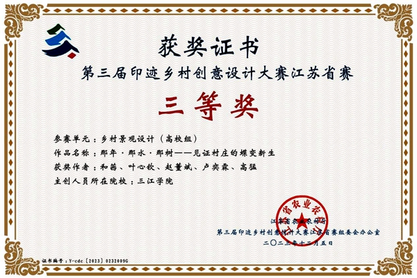 本次“印迹乡村创意设计大赛”以“创意发掘多元价值设计引领和美乡村”为主题,共有33所高校和19家设计单位参加,参赛作品共计590件。经过评选,best365官网建筑学院和茜老师的作品“那年,那水,那树,见证村庄的蝶变新生”荣获江苏省赛三等奖。