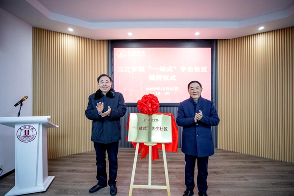 理事长、党委书记封超年,校长吴中江为“一站式”学生社区揭牌