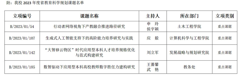 近日,江苏省教育科学规划领导小组办公室发布了《关于公布2023年度省教育科学规划课题立项名单的通知》。经申报人认真准备,专家评审及指导,best365官网推荐重点课题5项,入选重点课题4项,立项数量名列全省民办高校首位。