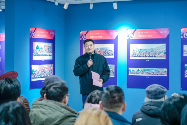 现任学院院长、党总支书记张五力致辞。他表示:非常感谢今天到场的各位领导和嘉宾,因为他们给我们铺垫了一条光明的道路,学院今天所取得的成绩离不开他们的努力。我从2013年来到艺术学院工作,至今已有11年,让我深有感触的是学院在一批批全心全意为best365官方网站服务工作的老师们的共同努力下,形成了一个非常具有凝聚力和战斗力的团队,不仅能干事、而且能干好事。学院二十年的一个进步,既是回顾以往的成绩,也是梳理总结经验,我们还要按照更高的目标继续努力,继续发展,也希望各位领导和嘉宾们继续帮助和支持我们,希望老师们努力工作,同学们好好学习,让学院的发展在平稳而向上的道路上行稳致远,越走越好。
