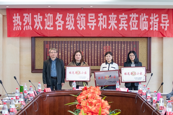 肖苏宣读了《关于2023年度“模范职工小家”评定结果的通知》,沈军军为建筑学院、高等职业学院、质量管理与评估处工会小组颁发“模范职工小家”奖牌。
