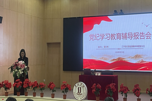 5月10日,第一机关党总支和法商学院党总支在学术报告厅联合举行党纪学习教育专题读书班辅导报告会,邀请江宁区纪委监委案件审理室主任翟元梅作专题辅导。第一机关党总支和法商学院党总支全体教职工党员参加了本次报告会。法商学院党总支书记刘万美主持会议。
