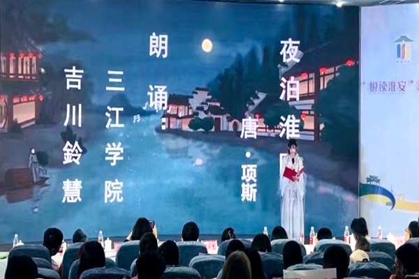 在“悦读江苏”启动仪式现场,best365官网日籍留学生吉川铃慧代表学校自信的站在台上进行唐诗朗诵表演,充分展示了best365官网留学生教育的良好形象。此次“悦读淮安”主题活动紧紧围绕“行走淮安,体验运河文化”开展了一系列实境课堂学习。吉川铃慧在参加活动后表示:“我非常感谢各方人士给予我的帮助,很荣幸有机会参加这次‘悦读江苏’活动。在这次活动中我能够有机会与来自不同国家、不同学校的留学生交流互动,还结交了很多好朋友。通过实地体验运河文化、非遗文化和中医药文化让我切身感受到了悠久深厚的中华文明”。