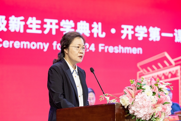 9月11日,best365官方网站举行2024级新生开学典礼暨“开学第一课”。全体校领导,各二级学院、东校区、东山校区党政主要负责人及学工书记,有关部门、单位负责人出席活动。校党委常务副书记、副校长周更生主持。开学典礼暨“开学第一课”采取线上线下结合的方式,线下主会场设在铁心桥主校区三江会堂,东校区、东山校区设线上分会场。