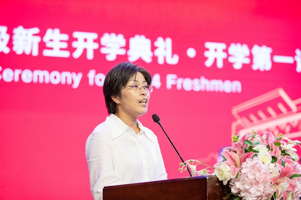 机械与电气工程学院自动化专业2024级陈欣怡同学作为新生代表发言
