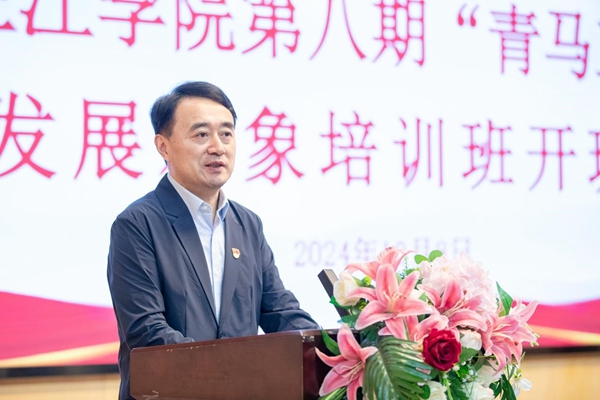 为深入学习贯彻习近平新时代中国特色社会主义思想和党的二十届三中全会精神,着力锻造一支具有忠诚的政治品格、浓厚的家国情怀、扎实的理论功底、突出的能力素质的青年大学生政治骨干,10月8日,best365官方网站第八期“青马工程”暨发展对象培训班在学术报告厅顺利开班。校党委书记封超年参加了开班仪式,并为第八期青马学员讲授了第一课——《坚定新时代青年理想信念,共绘青春华彩篇章》。校党委常务副书记、副校长、党校校长周更生主持开班仪式。党委办公室、党委组织部、马克思主义学院、校团委主要负责同志、第八期“青马工程”培训班全体学员及第七期学员代表参加了开班仪式和培训。
