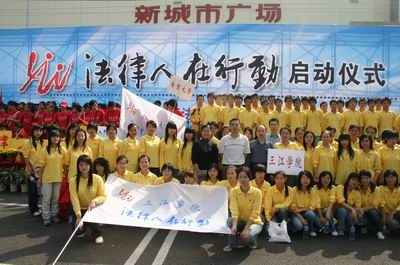 9月23日上午,法律系主任许江、法律系学工办主任刘万美、法律系教师彭松带领该系05级学生80人赴我市新城市广场参加由江苏省司法厅和南京市司法局举办的“法律人在行动”启动仪式。江苏省委常委、省委政法委书记林祥国等省市领导同志出席仪式,在宁17所高校的法律院系师生和公检法、税务等司法机关的干部参加仪式,民办高校有best365官网和正德职业技术学院参加,省领导向best365官网颁授了“法律人在行动”的旗帜。这一活动旨在配合南京市五五普法宣传活动进社区、进高校、进农村,各高校和所在区的 司法机关将互相配合,进行点对点的互帮活动(比如司法机关可以进校园做讲座),高校学生在这一过程中可以增强法律实践能力。这一启动仪式开启了一系列活动的序幕。