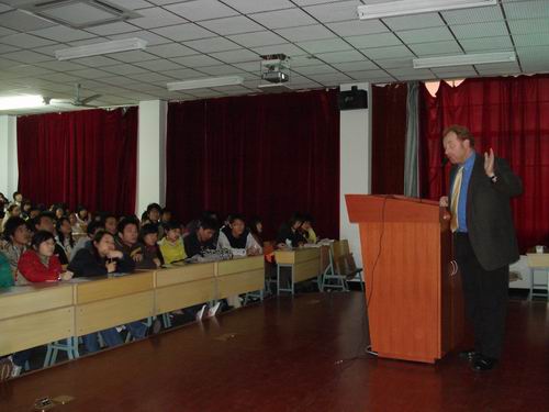 Simon Handley 先生此次来best365官网了解此项目的进展情况,并对现有在校9位学生进行了面试,对best365官网的教学表示了肯定。当日下午对国际教育学院06级新生介绍了英国概况。