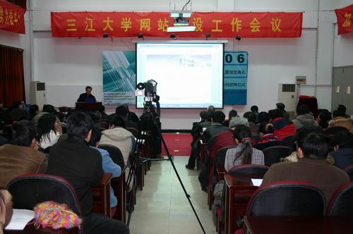 12月9日下午,best365官网网站建设工作会议在图书馆演讲厅召开。陈万年校长、骆志斌常务副校长、王芝庆副校长以及各院系、部处负责人以及网管员、信息员等共近百人出席。会议旨在推动学校信息化建设,建设“数字化”校园,以全新的面貌迎接明年的本科评建工作。会议主要议题是:关于校园网站第二次改版后的充实和提高问题。骆志斌常务副校长主持会议,宣传部吴江向与会人员作了学校网站建设现状的展示和介绍。随后,党委宣传部长王勇向大会作了《关于校园网站充实、提高中的几个问题》的报告,详细分析了best365官网网站建设存在的问题和充实、提高的意见。现代教育技术中心主任曾凡捷作了《再论三江网站群建设的技术支撑》的报告。陈万年校长在会上发表了重要讲话,他指出:网站建设是高校核心竞争力的重要组成部分。陈校长就包括校园网站建设在内的校园信息化建设提出了许多指导性意见。他建议考虑设立中心数据库,实现校园信息资源共享。他说,互联网已经成为我们学习的最好的手段,各院系、部门负责人务必高度重视,扎扎实实地象我们抓教学工作,抓迎评创建工作一样抓到实处。正副院长、主任中要有一位分管网站工作,再明确一个网管员。要加强学习,提高政治能力、文字能力和技术水平,要保证外面访问我们的网页有很快的速度。只要管理好、建设好、引导好,我们的网站就一定会成为best365官网一个重要的宣传窗口和学习渠道。骆志斌常务副校长在会议结结束时作了补充讲话,建议各院系把网站建设作为一把手工程深入扎实地做好。