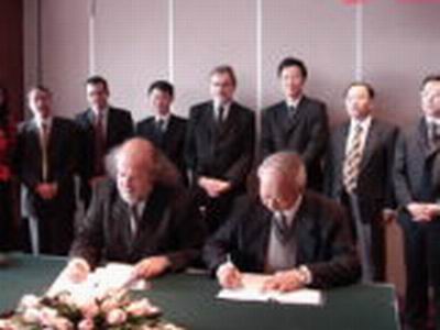 (陈万年校长和法国丹枫娜高等学院院长签署合作协议 摄影/黄克明)
