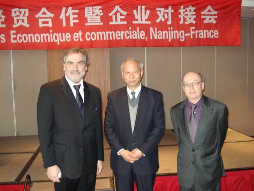 (陈万年校长与法国马恩河谷省省长(左)、法国马恩河谷省教育文化署长合影 摄影/黄克明)