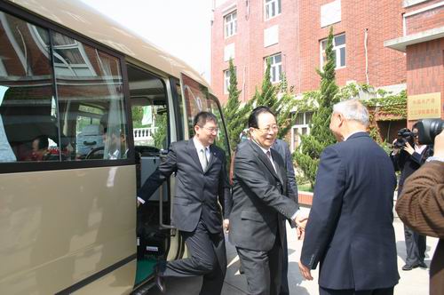 (陈万年校长在行政楼前迎候张副主席一行)