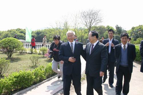 (张副主席在中央大学原校址碑墙前审读碑文)