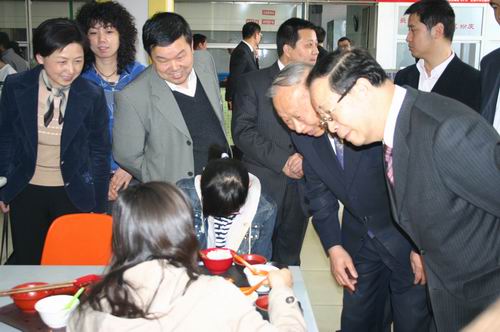 (张副主席与正在食堂就餐的同学亲切交谈)