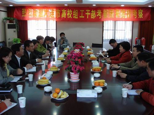 4月19日下午,在大连市高校工委高教处副处长赵宇带领下,大连市高校组工干部考察团一行10余人来best365官网考察民办高校党建工作情况,江苏省委教育工委组织处许正亚同志陪同。副校长、党委副书记叶俊,校办(党办)主任、学工部长、组织部长周更生,学工部副部长、团委书记屈伯俊等在行政楼101会议室接待考察团人员。