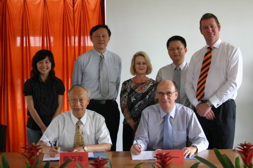 (陈万年校长新西兰怀卡托理工学院Mark Flowers院长签署合作协议)