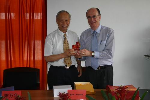 5月15日上午,陈万年校长和国际交流与发展处黄克明处长热情接待了姐妹学校——新西兰怀卡托理工学院Mark Flowers院长及其他随行代表。