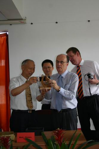 此次来访共分两个议程:首先,双方都充分肯定了在已开办的合作项目中共同做出的努力和成果,同时还就现阶段的发展情况提出了进一步的改善方案,签订了共同组建英语教学中心的合作协议。今后新方会在英语教学方面投入更多的师资和教学材料及方案,以确保学生在出国之前能具备更高的英语水平,更早地适应国外学习,为学生在新西兰顺利完成学业打下更坚实的基础。