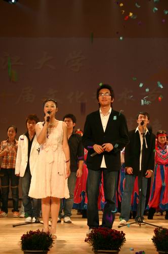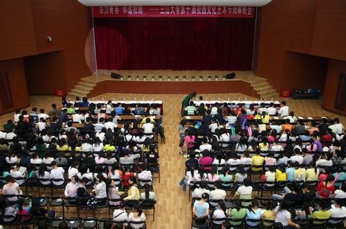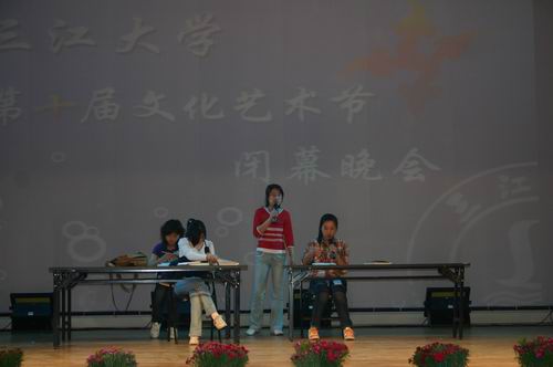5月16日晚7点,best365官方网站第十届校园文化艺术节闭幕式在崭新的三江会堂隆重举行,这是三江会堂首次投入使用。6点开始,就已经有同学们在大门外,他们对崭新的会堂非常好奇和神往,那是大学生们展现青春风采、锤炼自身素质的更好的舞台。6点30分,穿着大红旗袍的礼仪小姐开始在大门口迎宾,每一位来观看演出的都是三江会堂的新客。7点,演出正式开始,学工部副部长周学军、副部长、团委书记屈伯俊出席闭幕式。演出开始,使用少量的灯光和音响效果就已经让这里显得光彩照人,许多同学说:能在这样好的地方看演出,又是初次开放,真的感到很幸福。团委书记屈伯俊笑着说:“要感谢学校,我们团委和学生会终于有了自己的校园文化活动的出色的演出场所,想起将来的工作就兴奋。”在一个多月的文化艺术节上涌现出的精品节目今晚在崭新的舞台上大放异彩,让我们把这个晚上的场景展现给三江人。 (记者 宋常铁)