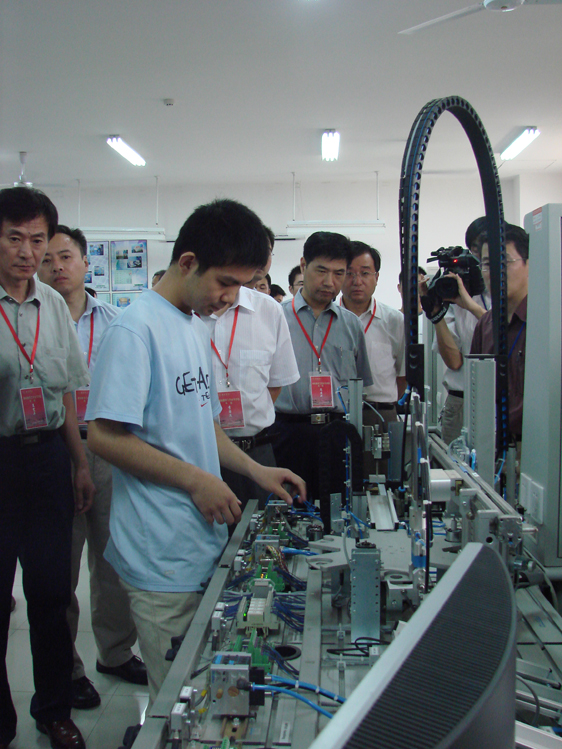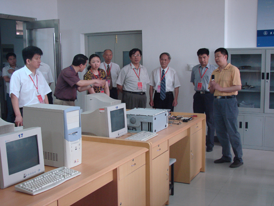 28日下午14:50,专家们在best365官网电工电子实验中心集中,听取了校产设备处处长曾凡捷对best365官网实验室建设总体情况的介绍。接着,电工电子实验室的李桂安老师向专家们介绍了实验室建设的基本情况,专家们对best365官网自己研发的电子技术试验箱很感兴趣,因为此试验箱与同类试验箱相比,既节省了资金,又增加了试验项目。在西门子自动化示范实验室听取汇报时,专家们比较关心学生的操作培训事项,讲解的老师就专家们感兴趣的问题做了详细回答。专家们还询问了自动化方面的学生毕业设计情况,并对德国Festo公司生产的MPS控制对象很感兴趣。随后专家们来到计算机基础教学部机房,听取了徐世宏老师对机房和实验室建设情况的汇报。专家们详细询问了该实验室的网络和机房管理情况,并与现场进行实践操作训练的学生交谈,询问了学生实践操作课的学习情况。专家组组长易佑民教授很关心机房的网络能否保障正常的教学需要等情况,并专门做了询问。