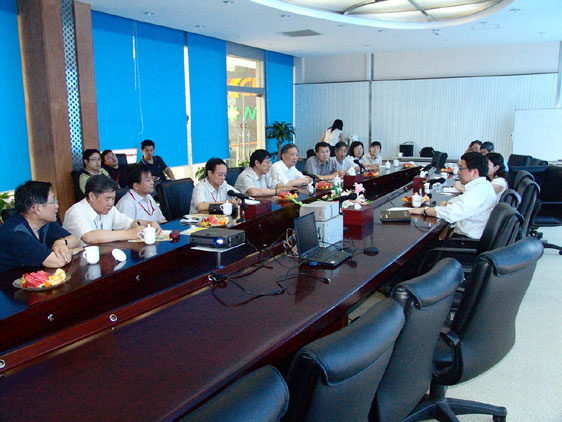 赵建华总经理首先在公司展厅里向专家们介绍了太阳能硅料、太阳能电池片、太阳能交通指示灯、太阳能气象站及太阳能生态社区等展品及模型。紧接着,赵建华总经理带领评估专家来到中电电气(南京)光伏有限公司的厂区,实地参观了生产车间及生产线。随后,赵建华总经理在公司会议室致欢迎辞,对专家们的到来表示热烈的欢迎,并希望专家们就学生的实习实训多提宝贵意见。专家们在赵总经理和骆志斌副院长等人的陪同下,兴致勃勃地观看了介绍中电电气(南京)光伏有限公司创办及发展历程的专题短片。