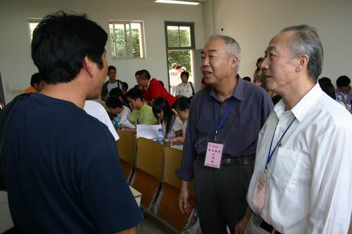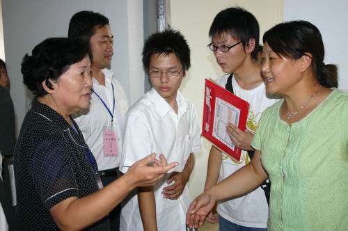 (陈万年校长视察迎新现场并与学生家长亲切交谈,听取学生家长的意见)