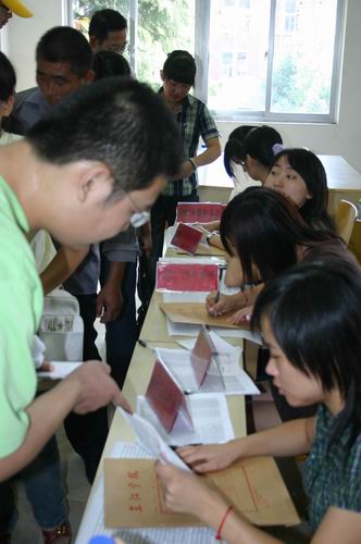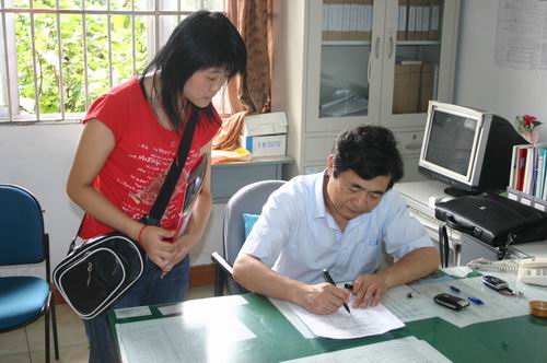 (陈云棠副校长坐镇迎新工作并在“绿色通道”办公室亲自签批学费缓交事宜)