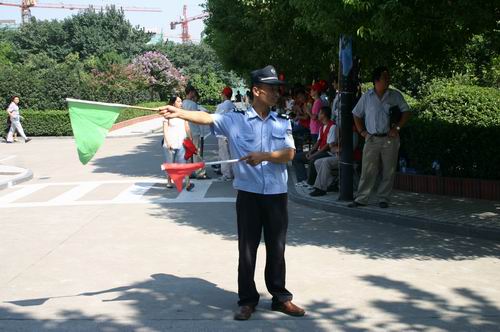 (小红帽在行动——大学生志愿者活动播散热情和亲切) 摄影/建筑系05级学生陈鹏
