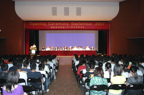 最后,开学典礼在欢快高昂的乐曲声中落幕,07届新生按所赴国别的不同,前往不同的教室,由国外合作大学代表及我院资深教授共同介绍不同国家的风土人情、校园文化及专业方向。