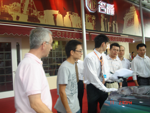 到了展览中心,同学们可算是真正体会到了汽车市场前景的一片大好,眼前的一切真让人感受到了何谓“火得很”与“大得很”!在同学们与展览会服务人员的谈话过程中,同学们了解到南京国际汽车展览会于2002年起已经成功举办了五届,07年的南京车展总展览面积超过6万平方米,占据南京国展中心A、B、C、D、E、F六个室内展厅以及东、南、北三个室外广场,总面积较去年增加20%,为历届之最。此次车展的品牌较往年也更多样化和丰富化,共有50多个品牌到场:南京菲亚特、南京依维柯、MG名爵、东风悦达起亚、奔腾、别克、雪佛兰、上海大众、荣威、长安福特、广州本田、斯柯达、东风雪铁龙、一汽丰田、一汽马自达、奇瑞、东南三菱、东风日产、广州丰田、北京现代、吉利等国内主流品牌;法拉利、玛莎拉蒂、宾利、劳斯莱斯、Acura(讴歌)、双龙、斯巴鲁、奔驰、雷克萨斯、奥迪、凯迪拉克、Arden、中欧等国际品牌。
