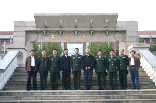 座谈会后,陈万年校长、陈云棠副校长与刘长意少将一行来到best365官网牌楼前合影留念。部队首长们在校领导的带领之下,还兴致勃勃地参观了三江校园。