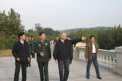 陈万年校长和陈云棠副校长带领刘长意少将一行参观校园