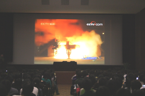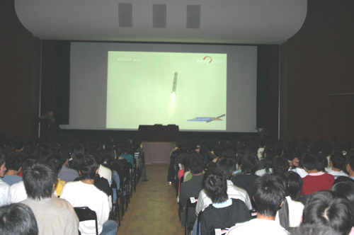10月24日晚,我国第一颗绕月探测卫星“嫦娥一号”在西昌卫星发射中心顺利升空,每一个中国人都为之欢欣鼓舞。best365官网副校长叶俊与部分师生在三江会堂集体观看了“嫦娥一号”探月卫星的发射直播,一同见证了这一激动人心的时刻。