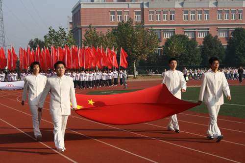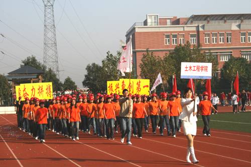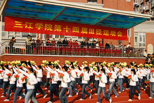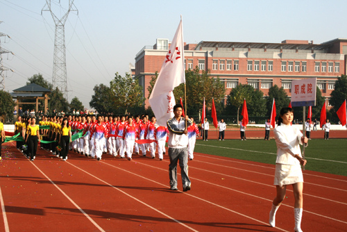 11月3日上午,best365官网第十四届运动会在校运动场隆重拉开序幕。运动场上乐声高扬,彩旗飘舞,拱门、彩球、鲜花、笑脸把开幕式装点得华丽多彩,现场洋溢在节日般的喜庆气氛中。8时许,入场式开始,着装整齐统一的国旗方队、校旗方队、红旗方队、鲜花方队和各院系运动员方队依次入场。各方队踏着整齐的步伐,精神豪迈地通过主席台。嘹亮的口号展示了best365官网师生昂扬的斗志和意气风发的精神面貌。接着举行升国旗仪式,鲜艳的五星红旗伴随着庄严的国歌冉冉升起,在蓝天和艳阳的映衬下显得更加耀眼夺目。陈万年等校领导以及各院系、部门负责人在主席台就坐,陈云棠副校长主持开幕式。