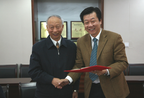 陈万年校长给赵浩华总经理颁发聘书