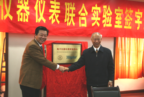 电子信息工程学院院长张安康教授主持仪式,陈万年校长首先向常州同惠电子有限公司总经理赵浩华一行表示了热烈欢迎。陈万年校长说,目前学校培养应用型人才,需要同地方经济、社会需要相结合,“真刀真枪”地为生产、科技服务。在此基础上,建立联合实验室,将会进一步推动这种合作。希望今后发挥各自的优势,紧密结合,提高教学质量。随后,常州同惠电子有限公司总经理赵浩华详细介绍了该公司的具体情况,以及发展的历程,并强调增强这样的合作,引进人才,对企业发展至关重要,争取实现双方共赢。接着双方在热烈的气氛中举行了揭牌仪式。最后best365官网聘请赵浩华总经理为客座教授,并由陈校长颁发了聘书。