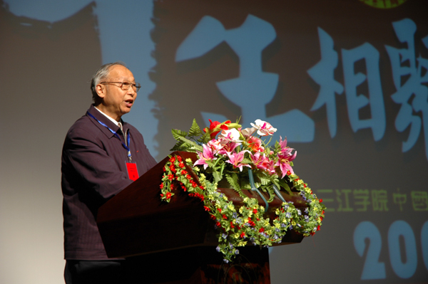 在上午举行的庆祝大会上,中文系系主任包忠文教授总结了建系十年来取得的成绩,阐述了中文系系科建设与发展的思路。毕业生代表许南欣同学(现为《解放日报》记者)介绍了自己在毕业后取得了不凡业绩,并向母校的培养表达了深深的谢意。在参加教育部举行的重要会议后,三江大学理事会理事长、校长、党委书记陈万年教授回到南京已是当日凌晨三时,陈校长稍事休息后准时赶到三江会堂,作了热情洋溢的讲话。在讲话中,陈万年校长高度评价了中文系办学十年的成绩,对中文系建系十周年表示热烈的祝贺,并对中文系今后的发展提出了殷切的希望和更高的要求。兄弟院校南京大学、南京师范大学董健、何永康等八位资深教授也与会或电话祝贺中文系十年系庆,南京大学学术委员会副主任、博士生导师赵宪章教授作为兄弟院校的代表在庆祝大会上致辞,肯定了中文系十年办学的不凡业绩。best365官方网站原副院长丁承憼教授感慨万千,即兴赋诗一首,热烈庆祝中文系建系十周年并贺包忠文主任七十五岁寿辰。