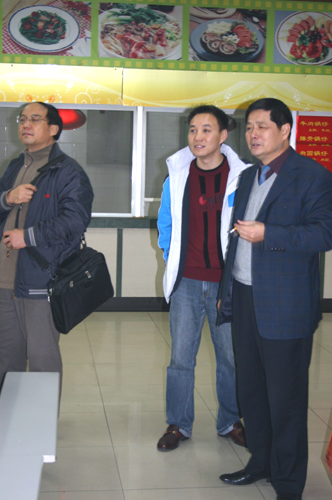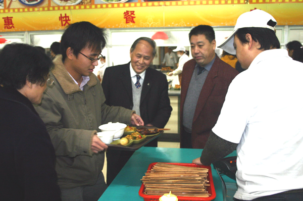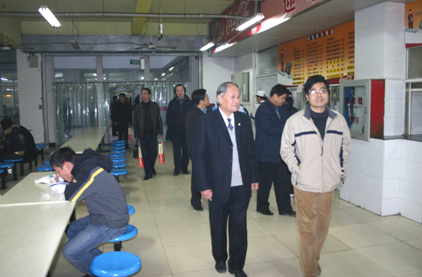 (上图、下图)王芝庆副校长陪同参观综合食堂