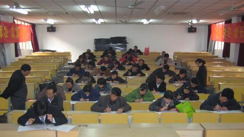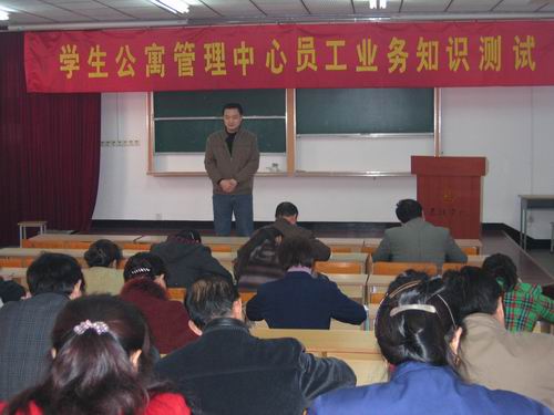 在此次考试期间,江务公司常务副总经理朱争鸣亲临现场,学生公寓管理中心领导监考。本次试卷满分为一百分,时间为九十分钟,共分为填空、选择、判断、简答、论述五大项,其中填空题充分体现了员工的基本素质和对本楼情况的熟悉程度;简答题让每位员工谈谈对日常工作中面临的问题所要采取的方法及提出个人中肯的合理化建议;论述题是本次考试最能发挥员工能力的一项,大家各抒己见,畅谈了在日常服务与管理中遇到的问题及解决的策略,并对公司、管理中心大胆地提出个人好的意见和建议。通过此次考试,大家普遍认为提高服务管理水平更好地服务于学生才是本次考试的最终目的。