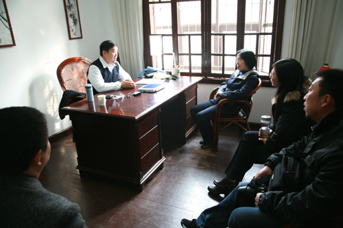 王勇部长与客人交流宣传工作经验 摄影/张正君